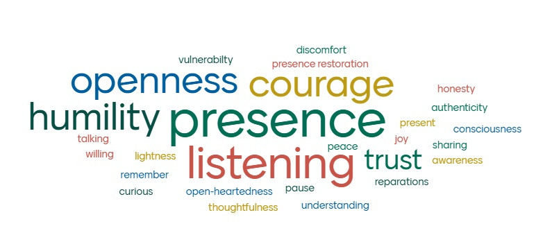 Guests were asked to reflect on the question: What does racial healing require of me tonight? Their answers are represented in the word cloud below.