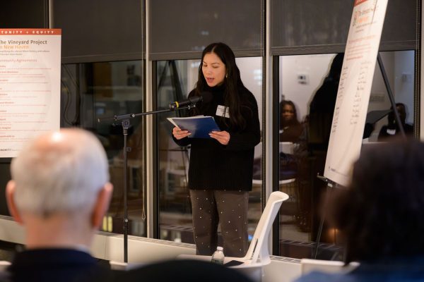 Poet Michelle Phương Hồ read poems based on her experience as a Vietnamese American, and talked about writing to discover the "hidden connections between unlike things."