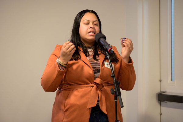 New Haven Poet Laureate Yexandra Diaz opened the evening's events with a powerful reading of her poem, The Protocol.